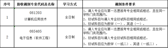 学院各专业缺额信息将由学校通过“全国硕士生招生调剂服务系统”向考生公布,请以调剂系统公布为准。参加调剂考生应满足以下条件: