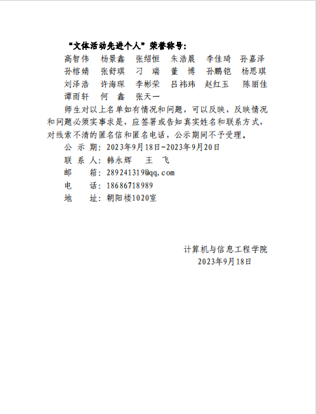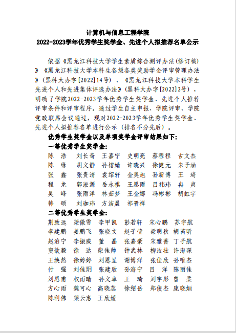 tyc7111cc太阳成集团2022-2023学年优秀学生奖学金、先进个人拟推荐名单公示