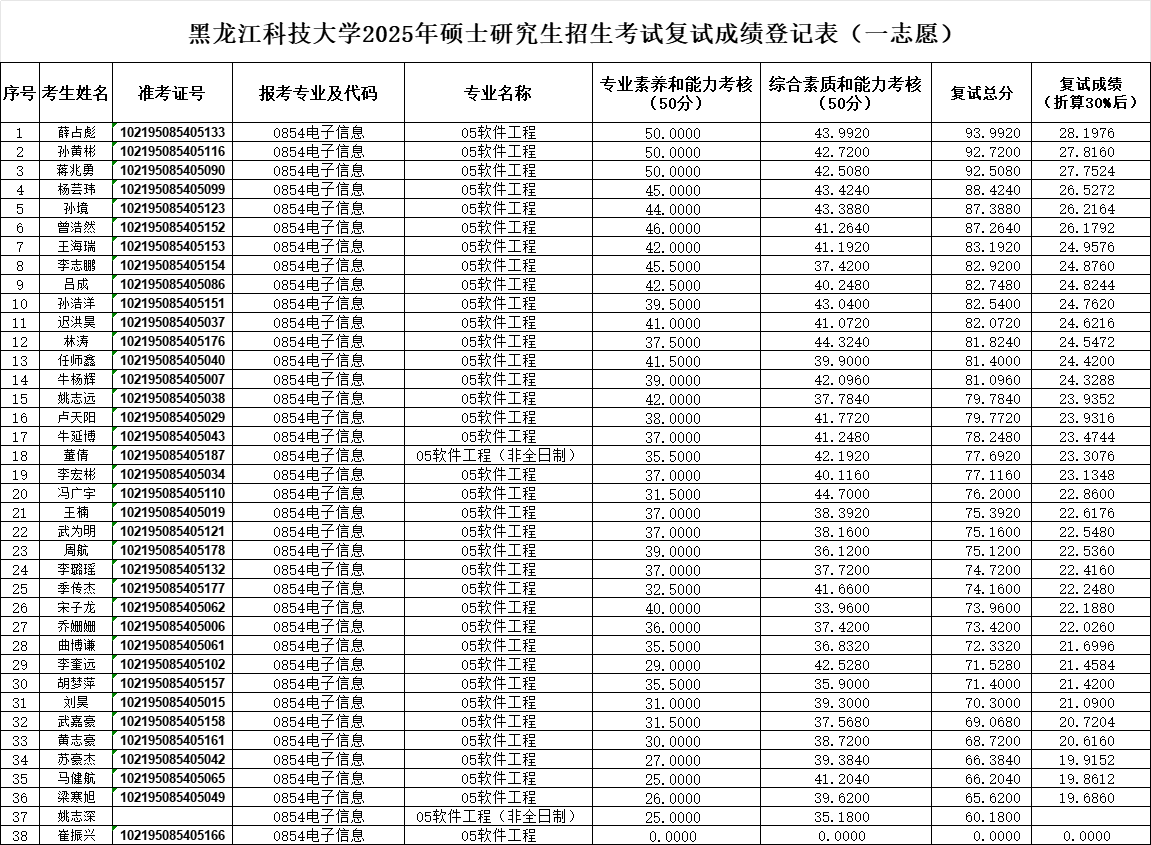 计算机学院2025年研究生招生一志愿复试成绩及拟录取名单(公示)