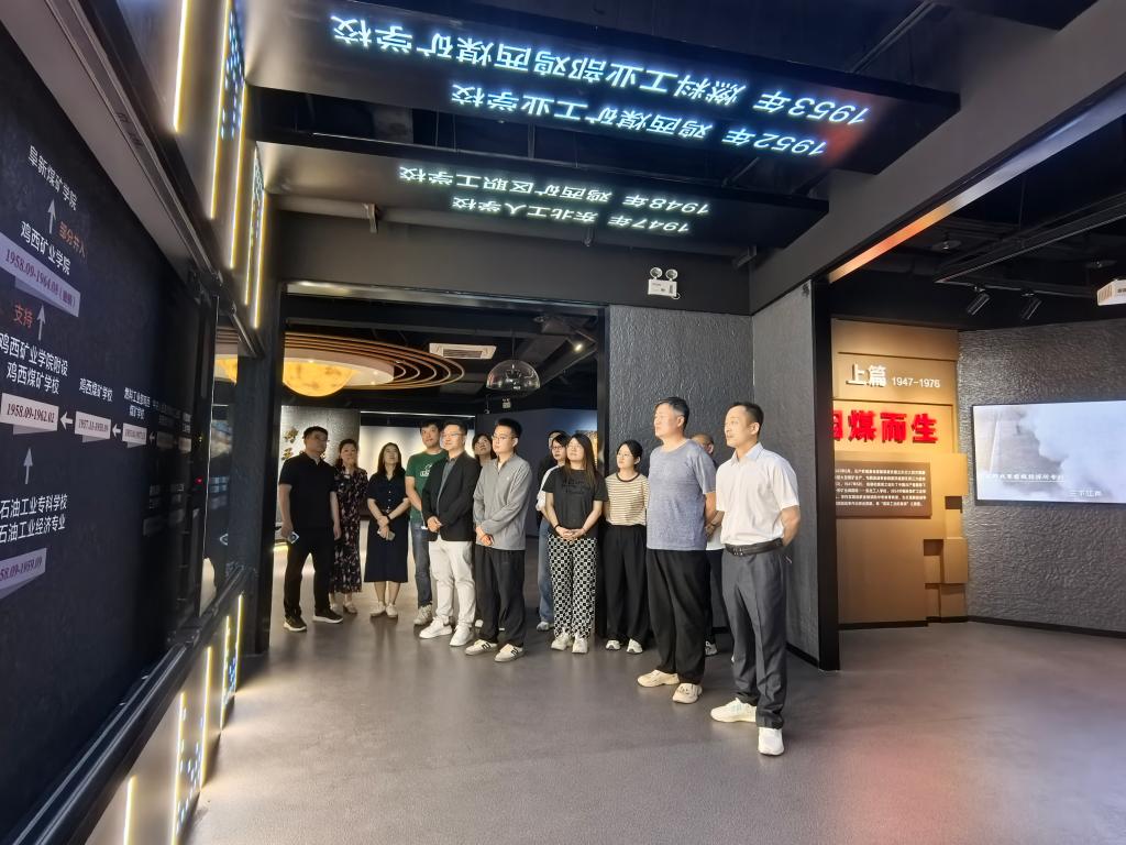 追溯发展脉络,感悟精神传承。在讲解员的引导下,新入职教师依次参观了校史馆的各个展厅。通过珍贵的历史照片、实物展品及多媒体资料,老师们详细了解了学校自成立以来“因煤而生”“依煤而长”“缘煤而兴”的发展脉络。从艰苦创业的早期阶段到如今特色鲜明的发展格局,学校始终与矿业产业紧密相连的办学定位引发了教师们的深刻共鸣。