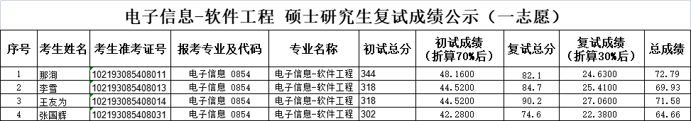 tyc7111cc太阳成集团2023年电子信息-软件工程硕士研究生考生复试成绩公示(一志愿)