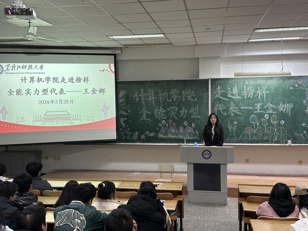 遵循学院2024年“学风建设质量提升工程”的目标,持续加强学风建设,挖掘和宣传学生成长成才的典型实例,充分发挥榜样的示范和引领作用,营造优良的学风氛围。按照学校2024年“永葆赤心 立德践行 勤学善思 笃行担当”主题教育活动的工作要求,3月28日,我院在科厦W108举办2024“走进榜样”文化沙龙第一期——“全能实力型”王金娜。