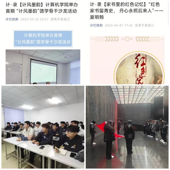 不忘初心,厚植理论基础坚定理想信念。为全面贯彻落实党的二十大精神,学习贯彻习近平新时代中国特色社会主义思想,巩固党史学习教育成果,各学生党支部书记对党的二十大精神进行了系列宣讲,组织全体学生党员展开学习研讨、撰写学习笔记。开设“家书里的红色记忆”、“红色观影周”、“计风墨韵”诵读红色经典专题板块发布系列推文;开展“缅怀先烈寄哀思 踔厉奋发向未来”主题征文和清明祭英烈教育实践活动,引导广大学生铭记历史,不忘初心,厚植爱国主义情怀。