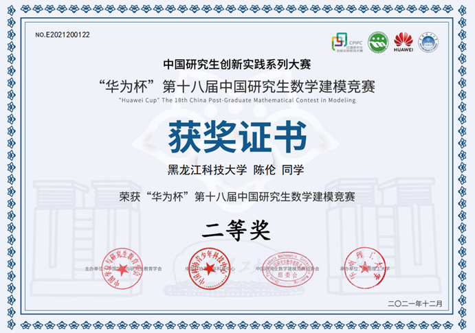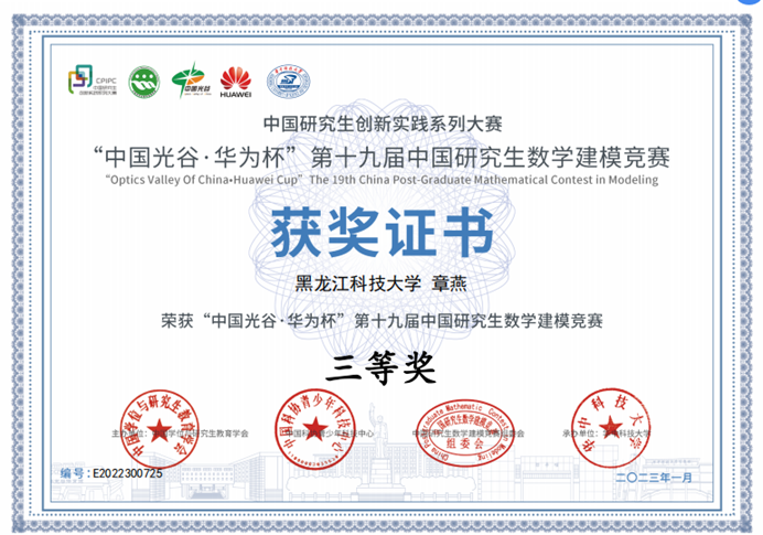 l获得2022年教育部中国研究生创新实践系列赛-“中国光谷·华为杯”第十九届中国研究生数学建模竞赛国家二等奖和国家三等奖各1项;