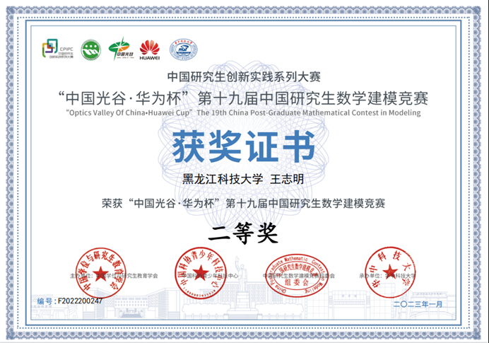 2021和2022年中国“华为杯”研究生数学建模竞赛全国二等奖2项和全国三等奖1项。